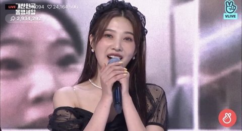 심지아 저 머리띠는 무대 땐 안씀 나중에 씌어줌 ㅠㅠㅠ그래도 이쁜 울 수영 목걸이도 조이 소장 목걸이