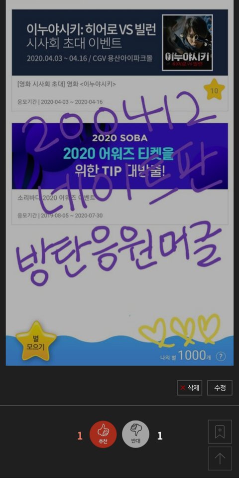 아미들 안녀엉 나 예전에 소리sea 별 천 개 모았다고 자랑하러 왔었던 머글이야!!! ㅋㅋㅋㅋㅋㅋㅋ 나 기억하는 이삐 있으려나ㅎㅎ