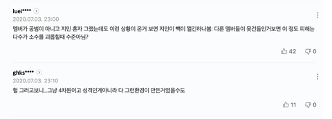 민아도 딴 멤버들 아니라고 강조하고 "유독" 나한테만 그랬다는거 보면 aoa 멤버들 한테 전부 그따구로 굴었을듯. 한성호도 지민 이뻐하고 친척이자너