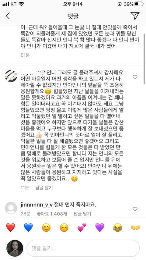 직접 인스타에 댓글 쓴 건 처음이라 잘한건지 모르겠어 이상하면 바로 지울게