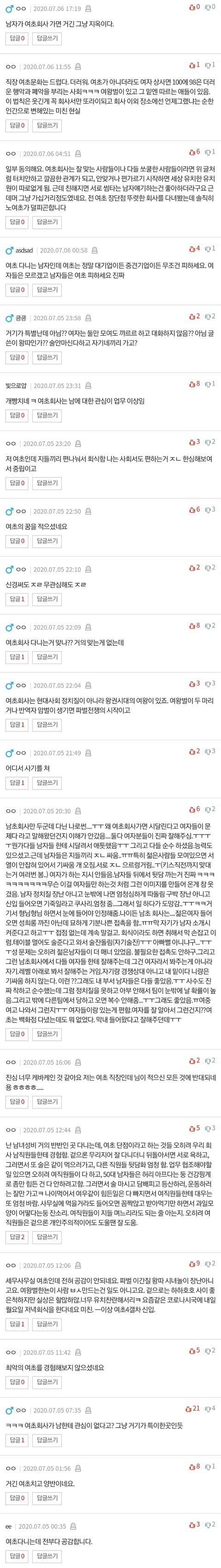 여초에 대해 안 좋게 말하는 댓글 16개