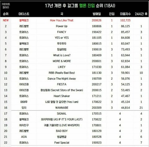 블랙핑크: 저번주 금요일 음원 발표후 7일째 70만대 유지중