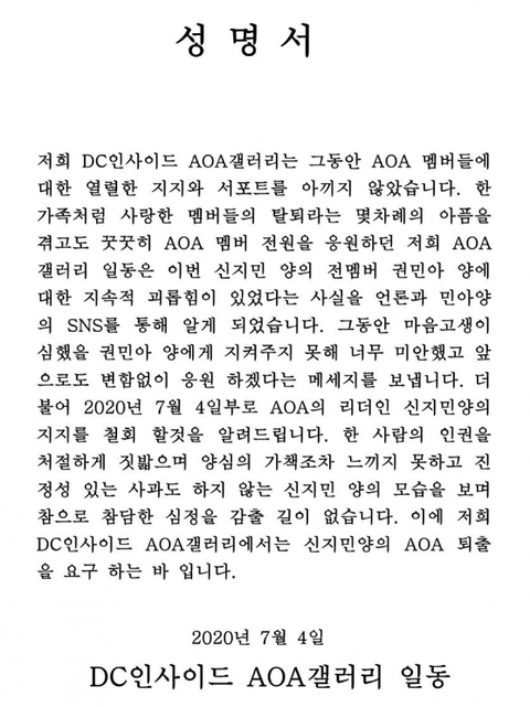 팬들 너무 조용해서 나는 공식 팬클럽이 아예 없는 줄 알았었음. 지금이라도 입장 표명해서 다행이네.