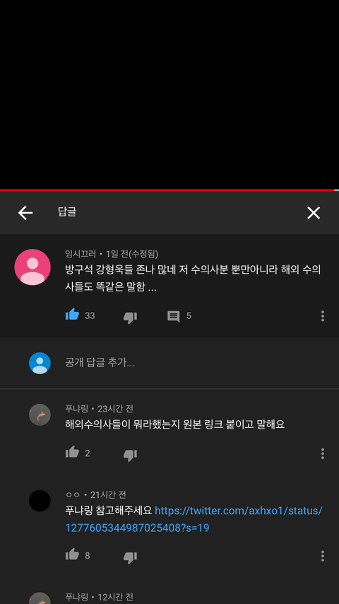 영상은 국내수의사가 지디 사건에대한 소견을 말하는 영상이였고 댓글엔 해외수의사들도 지드래곤 사건에대해 큰 문제 없다는듯아 말했다는 댓글이달림
