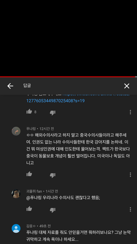 그래서 댓글작성자가 출처를 올려줌 근데 그 출처는 중국 수의사의 소견 글이였고 출처링크 주라던 사람은 막상 출처를 주니까 중국수의사가 무슨 수의사냐는듯이 말함