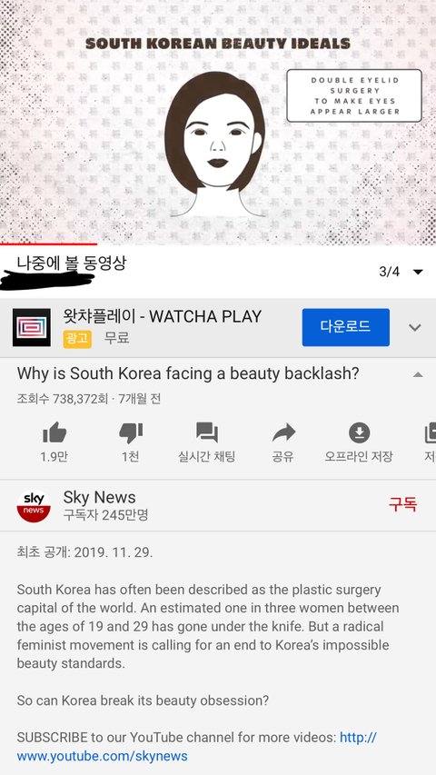 영상이 하나 떠있길래 궁금해서 들어가봤음 또 동남아에서 러브유어셀프하라고 한국인 조명받은얼굴이랑 어둡게나온거랑 비교하는거구나 하면서.. 근데 스카이뉴스?? 여기 어느나라 뉴스임?