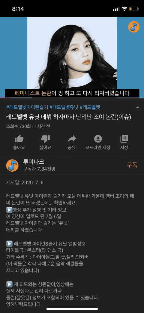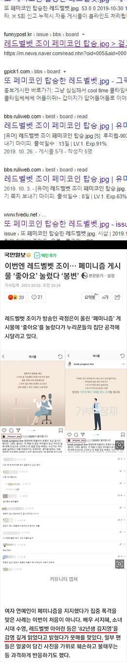 여기 댓글보고 환멸 .. 최근에 유닛 나오니깐 악개타령하면서 여기 조이팬들 판에서 계속 레벨갤 슬린 유닛 악개 ㅇㅈㄹ하는데... 레벨갤에 애초에 정상적인 팬이 있는곳이냐? 거기 오늘 유닛 나오니깐 고닉 차밍같은 조이 악개들이 슬린 제일 신나게 까더라 거긴 유동이나 잡덕 타팬들도 있어서 애초에 거긴 멤버들 서로 까고 노는곳인데 누구 악개들이 레벨갤에서 조이만 까더라 ㅇㅈㄹ.. 좀만 서치해보면 조이보다 아이린 예리가 더 많이 까이는곳임 ---------------------------------------------------------------------- 루미나크 그냥 아이즈원 위주의 정보 유투버인데 갑자기 아이린 슬기 악개행ㅋㅋㅋㅋㅋㅋ저거 그냥 컴백해서 서치 많이 걸리고 어그로 끌려고 저렇게 쓴거같은데?ㅋ