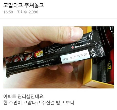 아파트 관리인 아저씨 ^^ 이거 가져가세요 선물