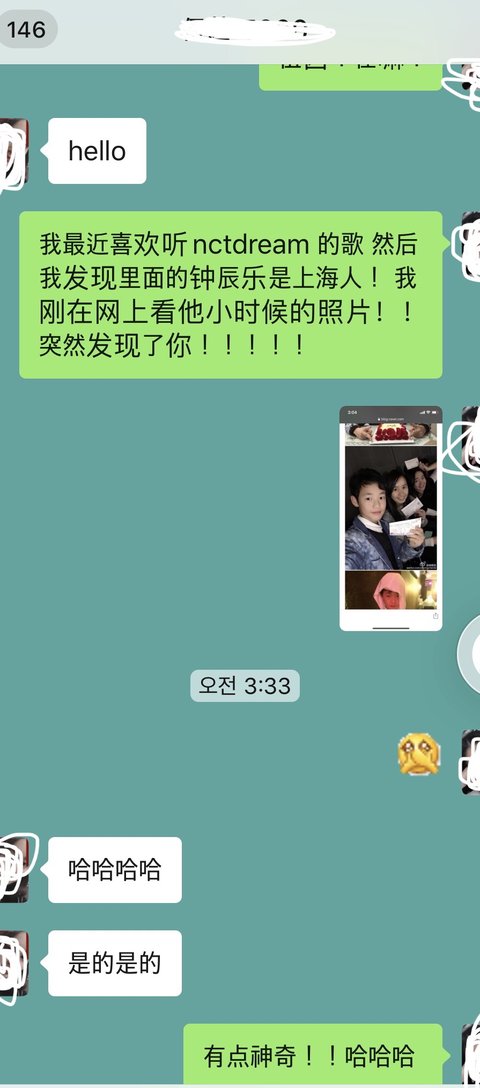 그리고는 천러 덕분에 연락도 안하던 그 친구랑 오랜만에 연락을 했엌ㅋㅋㅋㅋㅋ 밑에 대화 내용 첨부 할게 대충 내가 요즘 엔시티드림 노래는 자주 듣는데 천러라는 애가 상해 사람인걸 알고 사진을 찾아 보다가 너를 발견했어! 그리고 그친구가 자기 맞다곸ㅋㅋㅋㅋ이런 내용!!