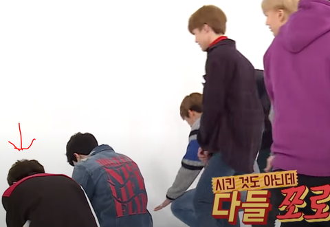 그냥 뒤돌아있으라는 거영ㅆ는데 인준이가 신발끈ㅋㅋㅋ묶으려고 쭈그림