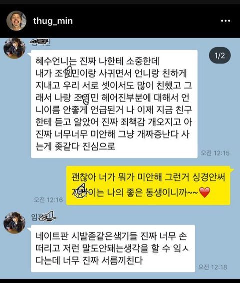 당사자들은 아무문제 없다고 하는데 정작 당사자와는 아무 상관도 없는 네이트판녀들이 바람폈다고 욕하고 ㅋㅋㅋㅋㅋㅋ 이래서 판이 욕을 먹는거야....니네들이 예전에 타블로 학력위조라고 계속 타블로 비난하고 죽이자고 달려들었던 타진요와 다를께 머냐? 아무리 팩트와 증거를 보여줘도 못믿는게 아니라 걍 아 몰랑~ 걍 조혜수 싫다고~ㅋㅋㅋ 이런식으로 안믿는거잖아? 그리고 헛소문 퍼트리면 충분히 고소까지도 가능하니까 앞으로 말하기전에 특히 넷상에서 사이버상에서는 신중해라