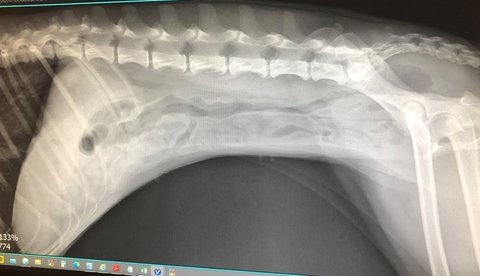 초음파 및 엑스레이 결과 껌으로보이는 이물질이 많이 보여서 입원