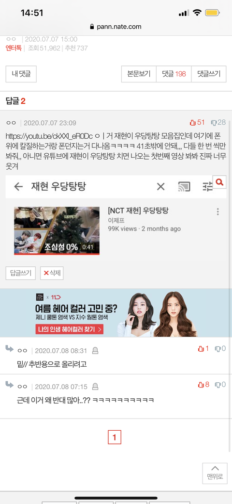 어제 올려놓고 방금 들어갔는데 순간 반대 너무 많아서 놀랬는데 즈니들끼리 알아서 반대 눌러서 추반 보내려고 했었나봐 ㅋㅋㅋ 아숩게도 추반용엔 못올라갔지만 ..ㅎ 어제 저거올리고 판자체를 안왔어서 ㅋㅋ 어휴 반대많아서 순간 뭐 잘못했나 했다 ㅋㅋ