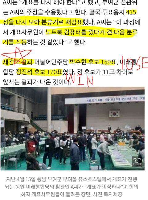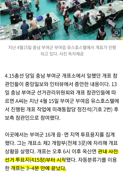 1.부여에서 사전투표지 개표 할 때 참관인이 재검표 요구