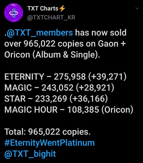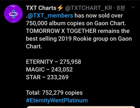 + TXT 이터니티 앨범 가온 플래티넘인증