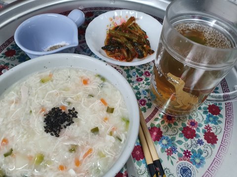 장염으로 하루는 죙일 토하고 이틀은 흰죽만 먹은 딸 힘내라고 해준 닭죽. 신기하게도 먹고나서 빠르게 회복