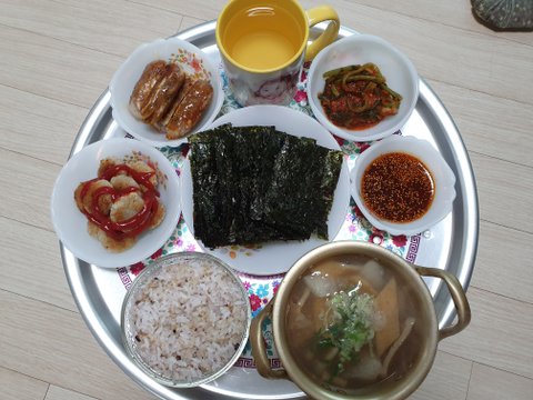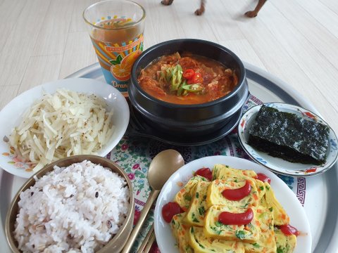 저는 아침을 안먹는데 사진첩에 있는 남편이랑 딸아이 아침? 아점상 사진이 있어 올려보아요 ㅋㅋㅋ