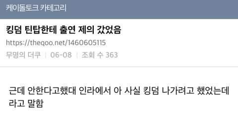 킹덤 제의 들어왔었대