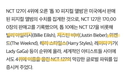 빌리 아일리시, 저스틴 비버, 레이디 가가, 위켄드, 헤리 스타일스 그리고 nct 127 진짜 멋있다 우리칠