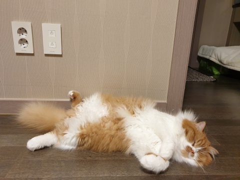 털이 길어 가끔 현관 노숙을 하지만, 빗질도 잘 참고, 양치질도 열심히 합니다.