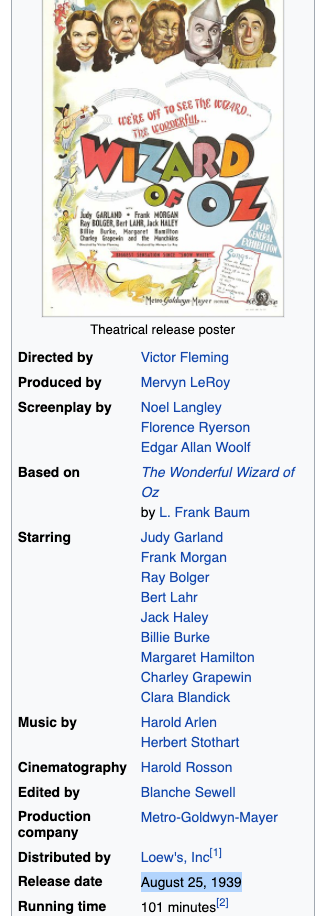 타싸에서 봤는데 오즈의 마법사 개봉일이 8.25 래