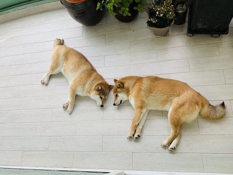 원래 개들은 마주보고 자지않는다고 들었는데 둘이 얼굴맞대고 자고있길래 몰래가서 찍었어요.ㅋㅋㅋ