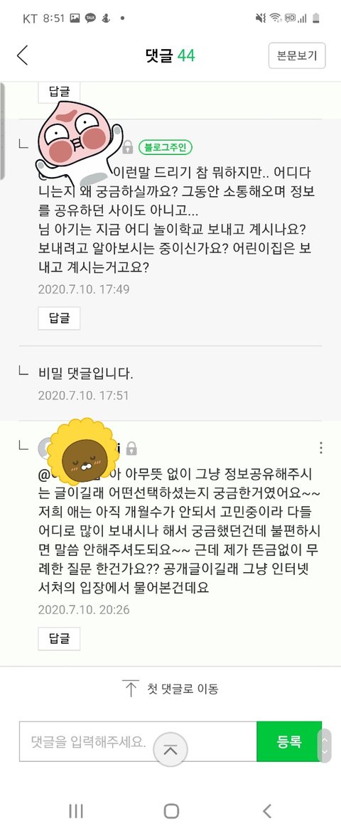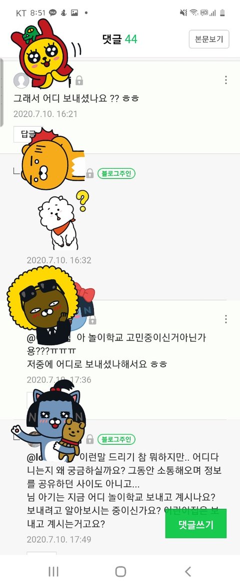 그래서 저는 검색을 한 입장에서 고민끝에 지금은 어느 놀이학교를 보냈는지 궁금해서 댓글을 달았는데..
