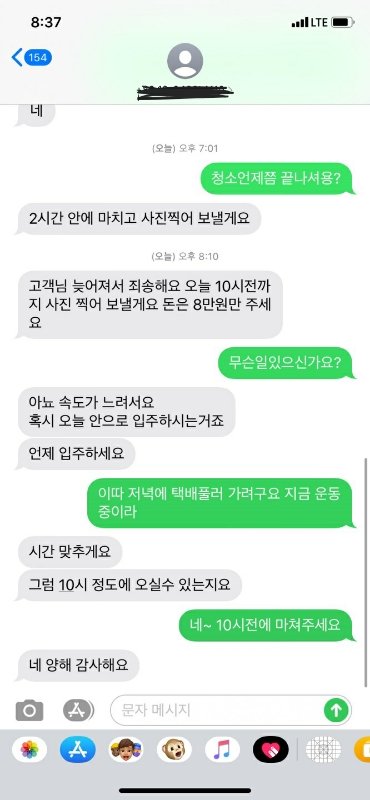 저는 내일 원룸 오피스텔로 이사를가요, 그래서 어제 입주청소 숨×에서 개인 분에게 예약을했고 오늘 오셨어요.