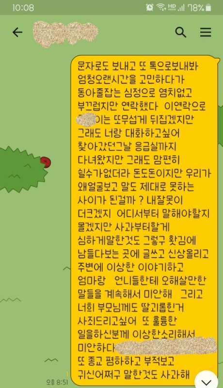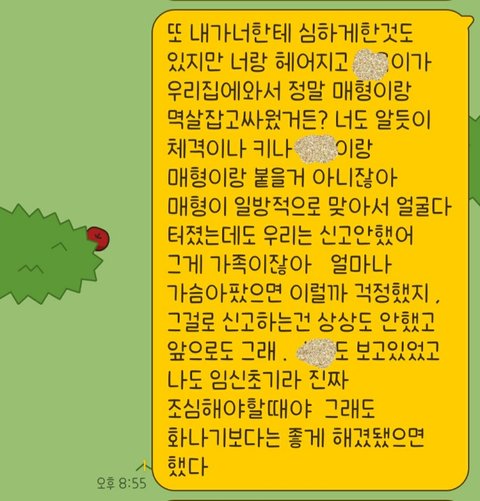 끝내 카톡 답은 오지 않았네요 근데 엄마가 오늘 입원 우울증 치료에대한 얘기를 조용히 물어왔는데 그게 뱃속 아이를 위해서 좋을것같다고요 지금 일이 저모르게 어떻게 돌아가는지 몰라 무섭습니다 그래섲 혹시몰라서 글은 삭제 안할생각이에요