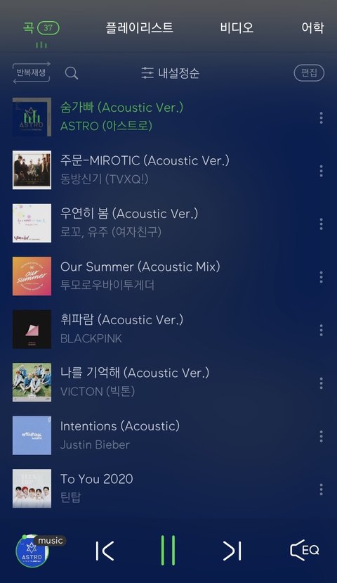 나 요즘 투바투 our summer 어쿠스틱 버전 듣고 어쿠스틱에 빠짐..... 너네도 좋은 노래 있으면 추천 좀 해줘..... 저거 플레이리스트는 방금 막 담은거다ㅠ