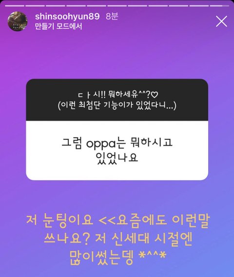 인별 스토리도 배운지 얼마 안됐는데 무물도 이제서야 배운 신세대 oppa..