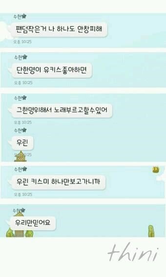 아냐 수현 oppa 당신은 팬들한테 치킨 얻어먹을 생각이나 해