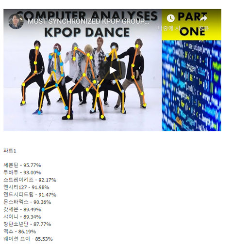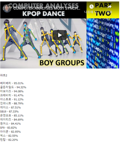 (근데 시간차 안무 같은 경우에는 좀 낮게 나와서 그거 감안하고 보셈 인피니트같은 경우는 저거보다 높게 생각하고 보면 돼)