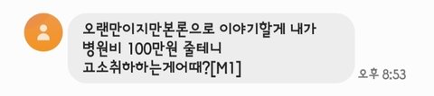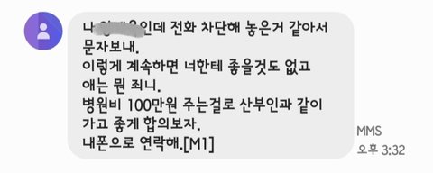 6,7주 초기 낙태비 100만원 줄 테니 합의하자니