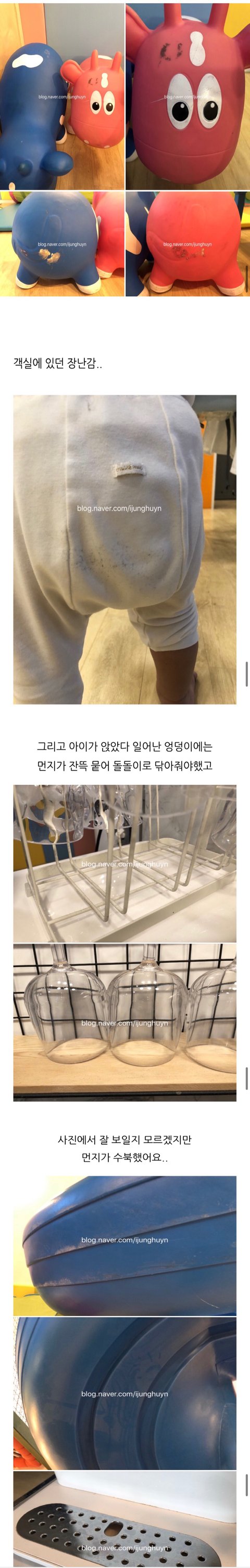 청소라는게 기본적으로 여기 저기 닦으면서 확인을 해야 하는거라고 생각을 하는데 먼지가 쌓이고 손바닥 자국이 남으려면 얼마나 많은 시간동안 미끄럼틀 한 번 닦지 않은 걸까 라는 의구심에 올린겁니다. 스크레치를 잘 보이게 확대해서 찍은게 아니라요.