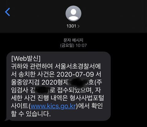 저번 주 금요일에 고소장이 접수되어 검찰청으로 넘어갔다는 연락이 왔습니다.