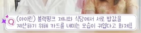 아이린 제니 친목썰 중 제일 귀여웠던 카드계산 썰 ㅋㅋㅋ