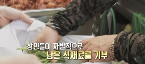 상인들이 자발적으로 남은 식재료를 기부를 했는데