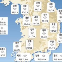 19˚/23˚ 체감온도 19.9˚시간당 강수량 1.5mm미세먼지6㎍/㎥좋음초미세먼지-㎍/㎥오존지수0.025ppm좋음시간대별 날씨정렬날씨강수바람습도오늘 온도20°도날씨비시간16시오늘 온도20°도날씨비시간17시오늘 온도20°도날씨비시간18시오늘 온도20°도날씨비시간19시오늘 온도20°도날씨비시간20시오늘 온도20°도날씨비시간21시오늘 온도20°도날씨비시간내일00시오늘 온도19°도날씨비시간03시주간날씨월 오늘 강수확률70% 강수확률60%최저,최고 온도19°/23°화 내일 강수확률70% 강수확률30%최저,최고 온도19°/24°수 모레 강수확률20% 강수확률0%최저,최고 온도17°/30°목 7.16. 강수확률0% 강수확률0%최저,최고 온도20°/30°금 7.17. 강수확률0% 강수확률0%최저,최고 온도21°/31°이전 페이지 1번 페이지1 2번 페이지2 다음 페이지관련오늘날씨, 기상특보, 태풍정보뉴스관련도순 최신순