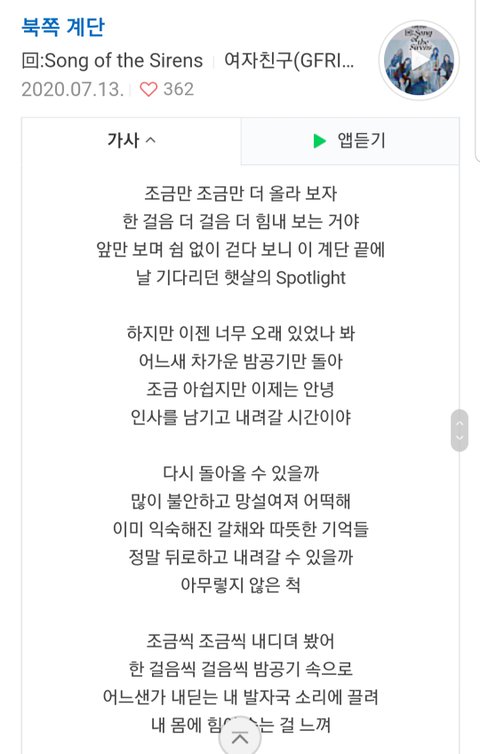 여자친구 활동하면서 자연스레 올라가고 내려가는 상황들에 대해 느낀 점들을 가사에 담았다는데..컨셉 바꼈다고 무작정 욕하지 않았으면 좋겠다ㅠㅠ