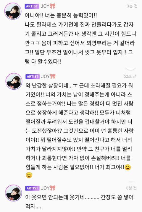 조이 시집 많이 읽고 학생때 전교2등까지 해봤다던데 생각이 많은게 글로 티난다 리슨답글들 ㄹㅇ따뜻해♥️