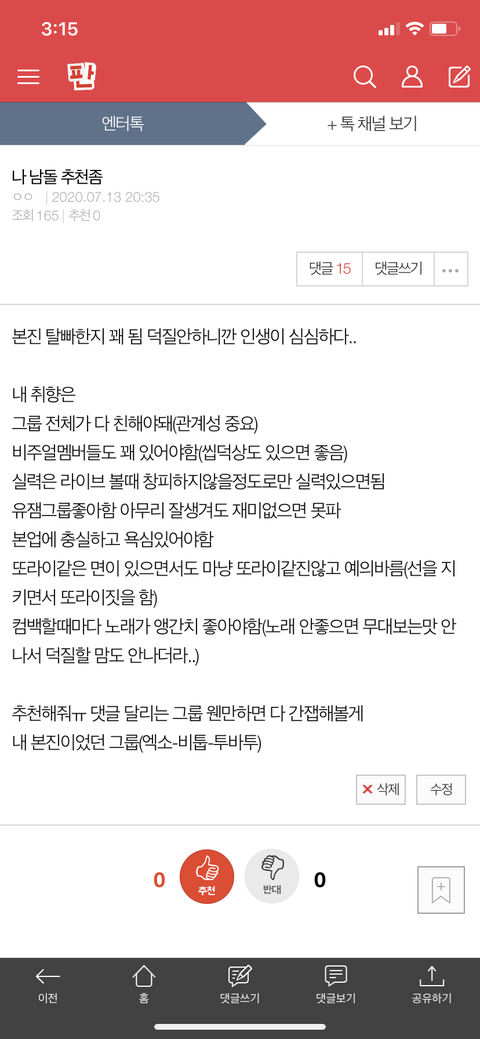 이 글 썼었는데 댓글에 링크 와다다 달아주시고 가셔서ㅋㅋㅋㅋ 빅톤은 꼭 간잽해봐야지라고 생각해서 링크달아주신거 다 봤는데 또 영상 추천해주실거있나요?? 아직 입덕까진아닌데 진짜 흐뭇하게 영상봤어요ㅋㅋ특히 밴라이프랑 개그맨이 꿈이었던 소년들이 이 영상 진짜 너무 재밌게봤어요ㅋㅋㅋㅋ전 한승우님이 그렇게 또라이..(죄송합니다)행동을 하실줄은 몰랐거든요 진짜 그냥 조용하실줄알았는데.. 사실 다른 그룹분들것도 영상보고 간잽해봤는데 제 개그코드가 맞는건 빅톤영상이더라구요 뭐랄까 친근하다고 해야하나 암튼 다른 재밌는 영상있으면 추천해주세요..! 아 그리구 한승우님과 임세준님 케미 더 보고싶은데 둘이 또 노는 영상 없나용?
