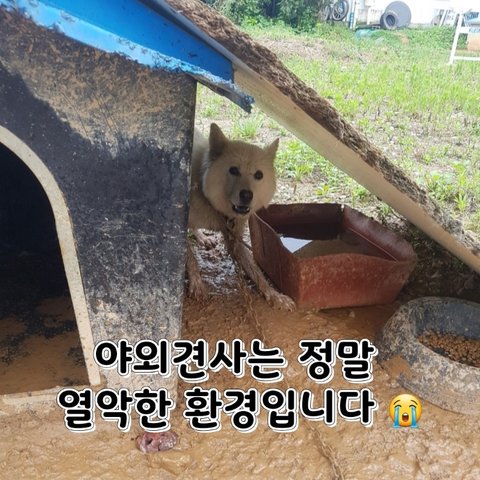 실내가 없는 김제보호소 아이들은 내리는비를 피할 공간조차 마당치가 않습니다