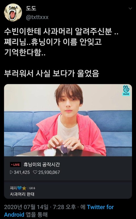 휴카 오늘 조온습 무슨일