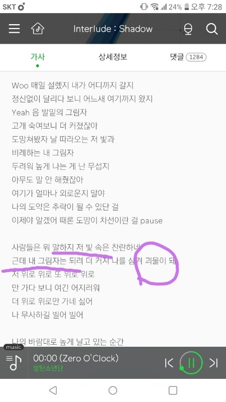 그리고 쉐도우 가사