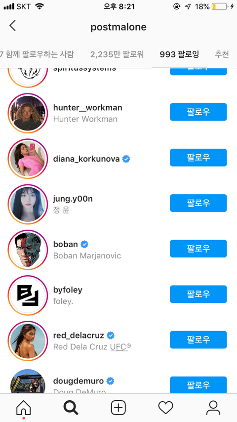 포스트말론 이 사람 왜 팔로우했을까???