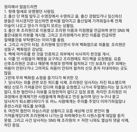 사람들이 빗발치자 그제서야 그 글을 내린 상태구요 사람들이 그 조리원 홈페이지에 불만을 토로하자 조리원 쪽에서도 홈페이지에 공지를 띄었어요 (해명아닌 해명글)