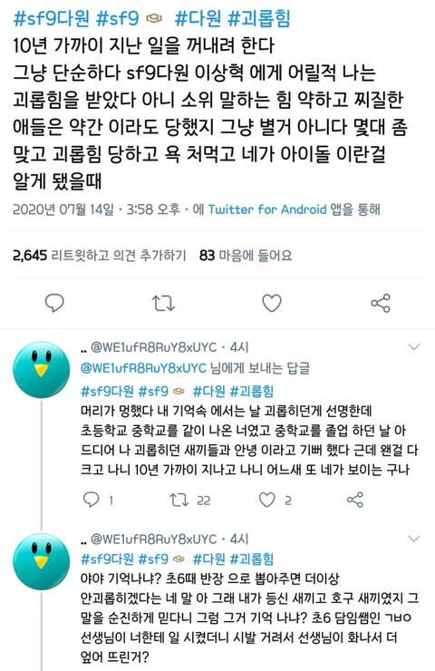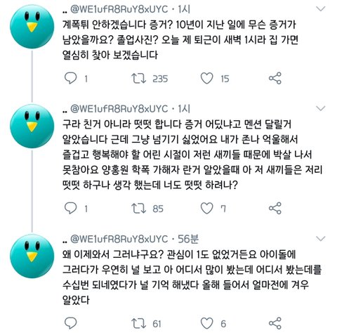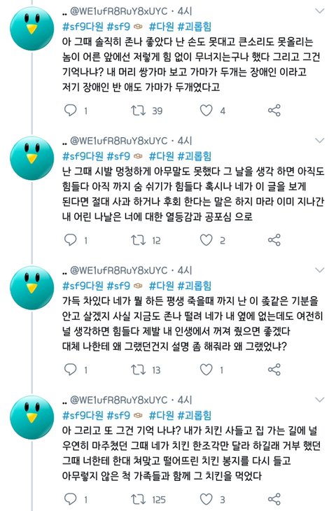 아니 씨ㅡ발 ㅋㅋㅋㅋㅋㅋㅋㅋㅋㅋㅋㅋ 야 안쫄린다며 피해자라던 이 개새ㅡ기 계폭하고 텼는데? ㅈㄴ 뭐하자는 거냐? 명예훼손이란 훼손은 다하고 지가 당당했으면 끝까지 안지워야할 거 아니야 ;;;; 지는 당당하다고 절대 안지우겠다는 사람이 이렇게 소속사 사실무근 말 하나에 계폭하고 튀어버리면 당연히 지어낸 소설임이 더 신뢰있어지는데 ㅈㄴ 빡치네 얘 찾아서 고소했으면 좋겠다