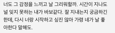 이제 한달 지남 한번도 안잡아준 그사람이 너무나 미웠음 하지만 나는 나를 사랑하지 않는 사람을 놓친거지만 그사람은 자기자신을 사랑해..