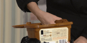 된장을 한 움큼 퍼서 얼굴에 척